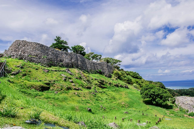 中城城跡は、沖縄本島中部の中城村にある、かつての中城王国の城跡です。城内には、石垣や堀、櫓台、瓦葺きの士官邸など、当時の様子を伝える建造物が数多く残されています。